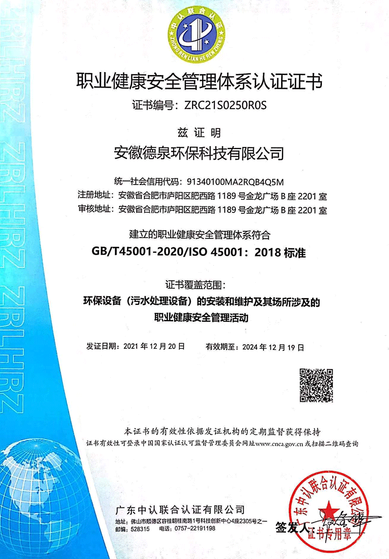 安徽德泉環(huán)保科技有限公司致力于廢水、廢氣、固廢技術處理研發(fā)、設計、施工及運營管理,從事環(huán)保設備及設施的制造和銷售,為環(huán)保項目系統提供專業的技術咨詢和服務。是一家集建筑勞務分包,工程總承包(EPC)、項目投資(BOT/PPP)、運營管理(O&M)于一體的綜合性新型高科技企業。